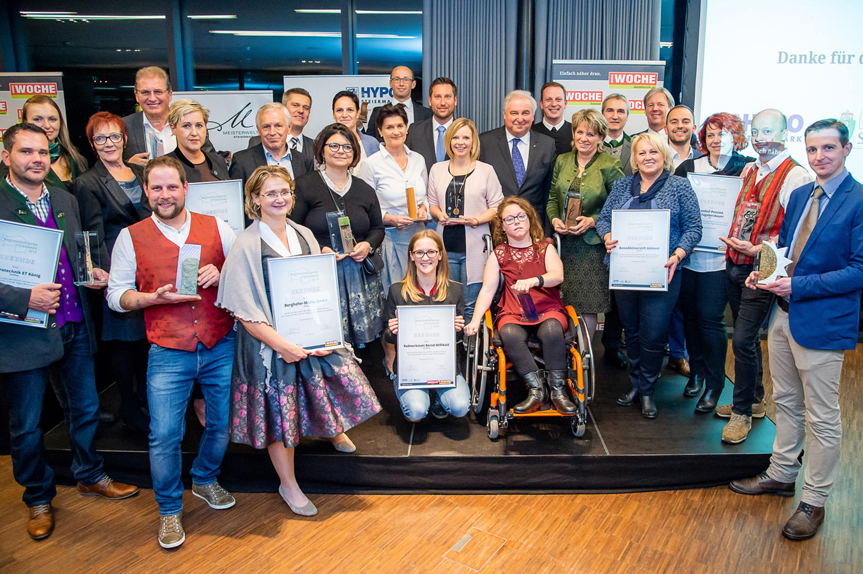 Die Vorjahressieger mit Landeshauptmann Hermann Schützenhöfer und WOCHE-Geschäftsführer Roland Reischl. ©fotojörgler | Der Abdruck ist für Pressezwecke honorarfrei.